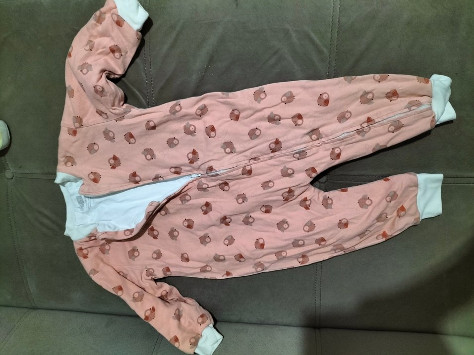 Kız çocukları için pembe polar pijama, uzun kollu ve V yakalıdır. Fermuarlı tasarımı ve küçük hayvan desenleri bulunur. 1 tog