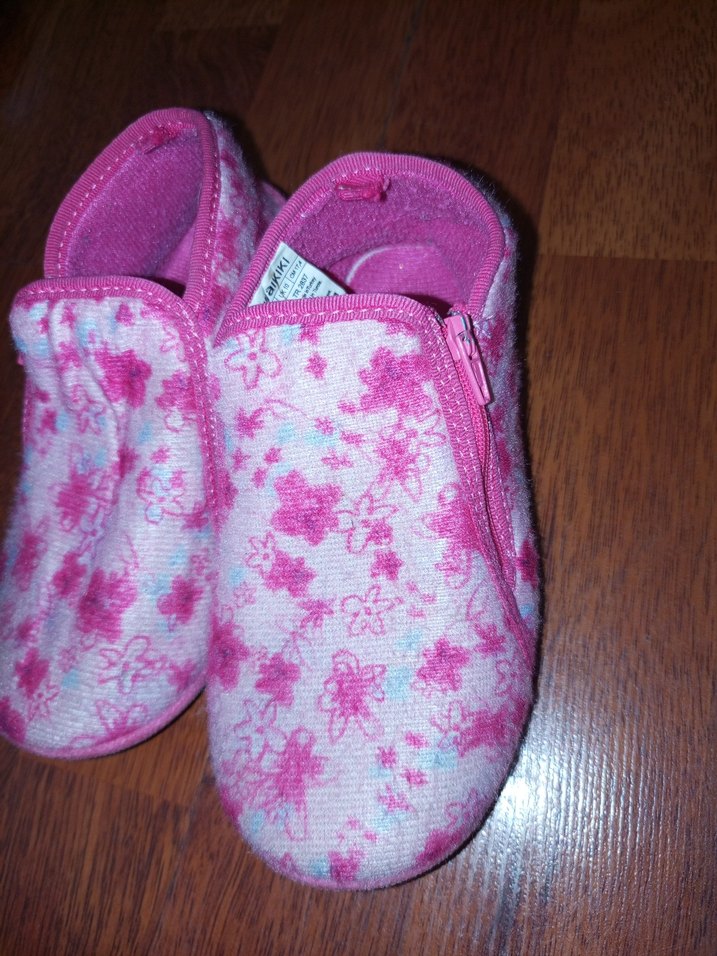 Kız çocukları için renkli batik desenli, fermuarlı ve yumuşak kumaştan yapılmış sıcak terlikler. Pembe tonlarında.
