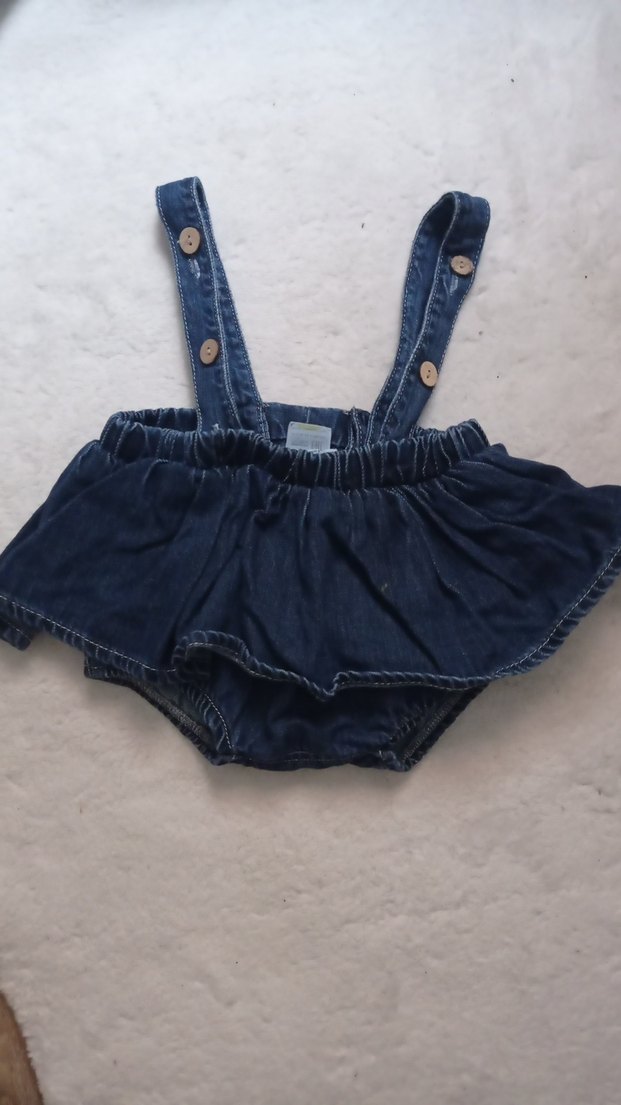 Koyu mavi kot kumaştan, askılı ve fırfırlı detaylı, bol kesim kız çocuk şortu. Sokak stili için uygundur. kısaltılmışti askıları onları açabilirsiniz kısa kalırsa sorunu yoktur