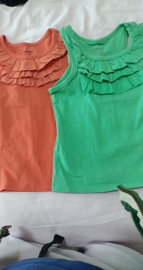 Kız çocukları için askısız, fırfırlı yaka detaylı basic atletler. Canlı yeşil ve mercan renk seçenekleriyle, yumuşak sentetik kumaştan, vücuda oturan kesimde bohem tarzda.