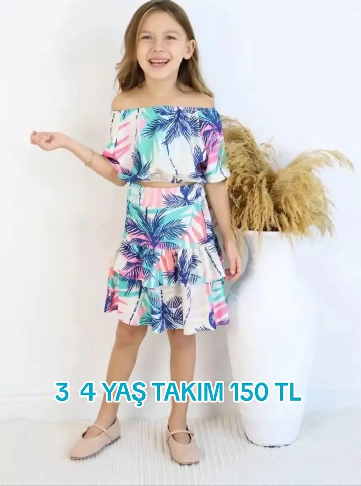 Rahat kesimli, pastel tonlarda batik desenli kız çocuk elbisesi. Fırfırlı detaylı, straplez ve kısa kolludur, yumuşak sentetik kumaştandır.