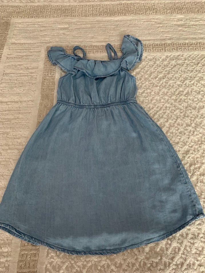 Kız çocukları için lacivert denim elbise,tril tril bir kumaş , straplez yaka ve fırfır detaylıdır. Salaş kesimi ve batik deseniyle bohem tarzda, trend günlük kullanım için uygundur.