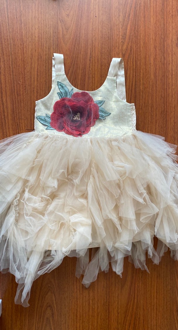 Kız Çocuk Fırfırlı Nakışlı AbiyeElbise