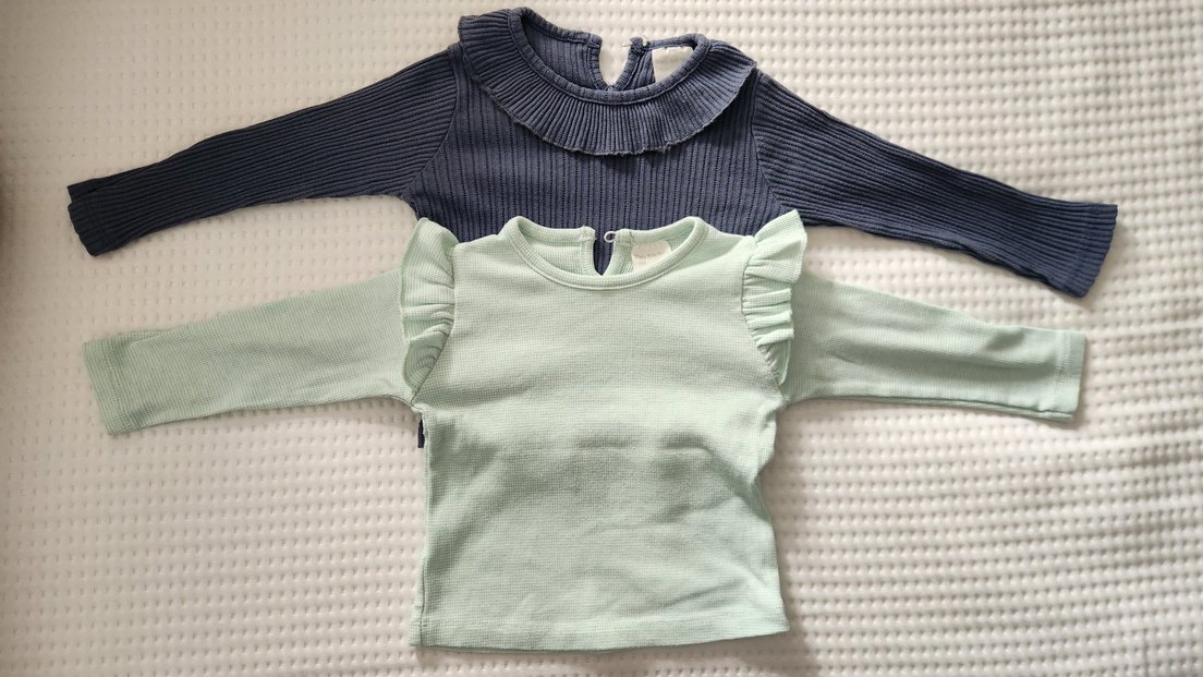 Yumuşak pamuktan yapılmış, uzun kollu, yuvarlak yakalı ve fırfır detaylı kız çocuk bluzu. Pastel renklerde.