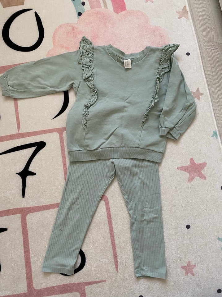 Bebek kızlar için mint pastel renkli, fırfırlı uzun kollu üst ve uyumlu fitilli pantolondan oluşan yumuşak ve rahat takım.