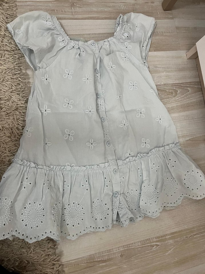 LCW açık mavi Pamuklu, nakışlı desenlere ve fırfır detaylara sahip bol kesim kız çocuk elbisesi. Kısa kollu ve kayık yaka, bohem tarzda.