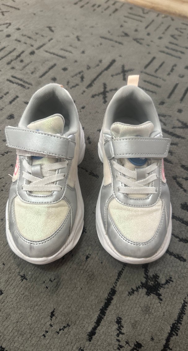 Gri renkli, bağcıklı ve cırtcırtlı kız çocuk spor ayakkabısı. Lastik tabanlı, sokak stiline uygun tie-dye desenli model. 27- -28 numara giyebilir