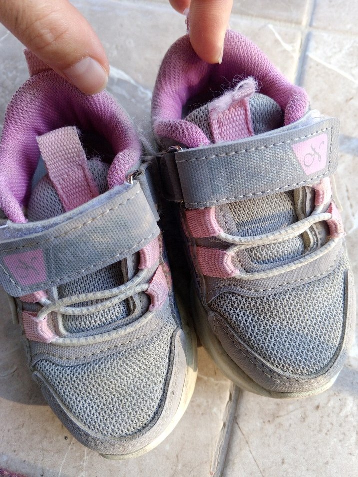 Gri renkli, bağcıksız, cırt cırtlı kız çocuk sneakers.ortopedik taban çok rahat bir ayakkabı bi çok sevdik aynı üründen iki tane mevcuttur diğeri 1-2 kez kullanıldı fiyat tek ayakkabı içindir