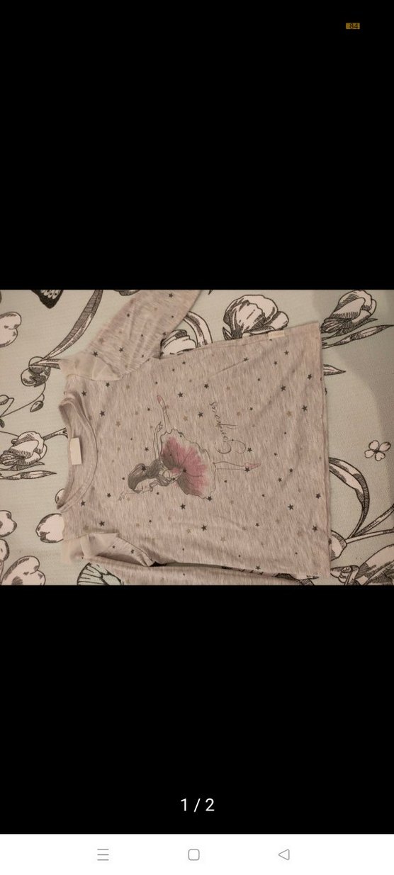 Gri renkli kız çocuk tişörtü, kısa kollu ve yuvarlak yakalıdır. Baskılı deseni ve fırfır detaylarıyla rahat bir kesim sunar.