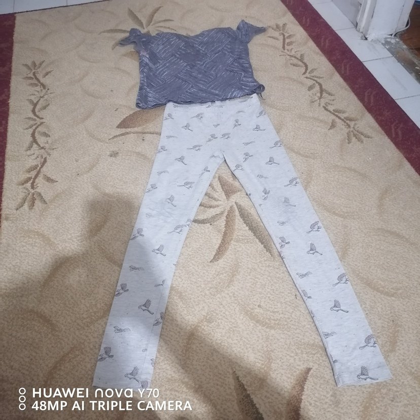 Kız Çocuk Gri Baskılı Pamuklu Tayt