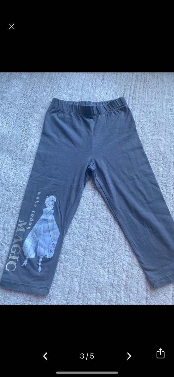 Gri pamuklu, bol kesim kız çocuk taytı, elastik bel bandı ve bir bacakta baskı deseni bulunur. Rahat ve günlük kullanıma uygun.