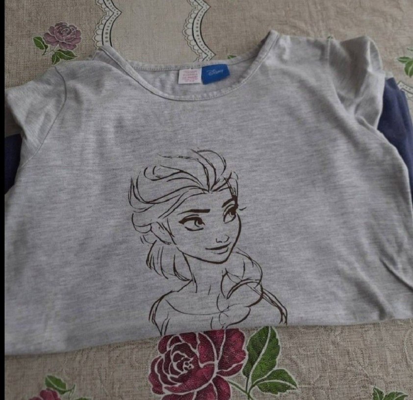 Kız çocukları için gri pamuklu tişört, bol kesim, yuvarlak yaka ve kısa kolludur. Baskılı deseni ve düğme detaylarıyla trend sokak stili için uygundur. Kısa kollu, yuvarlak yaka, pamuklu gri tişört. Baskılı ve düğmeli detaylı, bol kesim, rahat sokak stili tişört. LCW markalı, 11-12 yaş 146-152 cm boy aralığı. Mavi alt, gri üst elsa desenli pijama takımı az kullanılmıştır. Küçüldüğü için satılıktır.