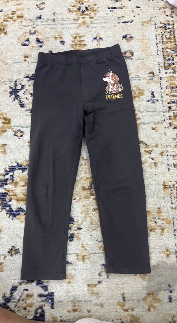 Kız çocukları için gri renkli, baskılı unicorn desenli fitted tayt. Yumuşak ve sıcak kumaştan, elastik bel bantlıdır.