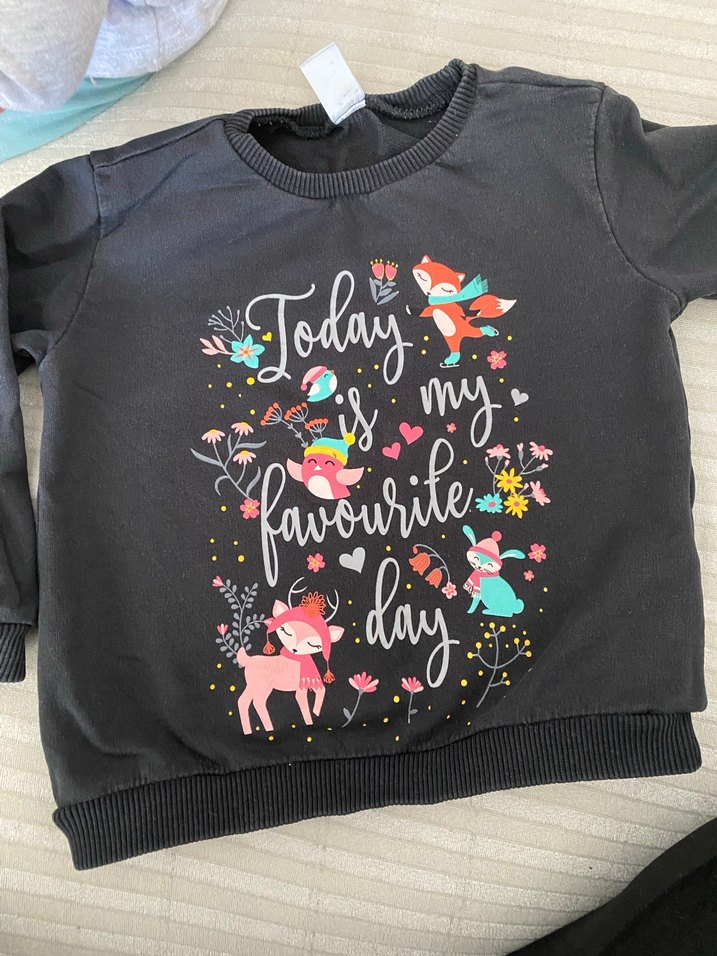 Kız çocukları için koyu gri, uzun kollu ve bisiklet yakalı sweatshirt. Rahat kesim, yumuşak ve sıcak kumaş. Önünde renkli hayvanlar ve 'Today is my favourite day' yazısı ile 'awowme' baskısı var. Yılbaşı temalı