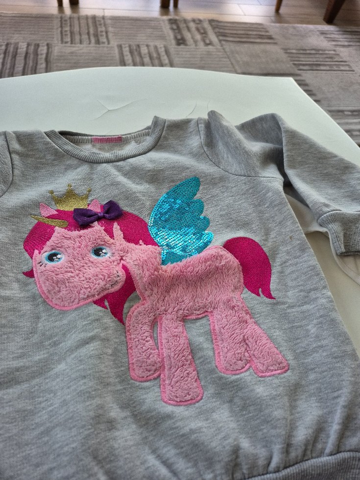 Gri renkli, baskılı ve sim detaylı kız çocuk sweatshirtü, yuvarlak yakalı ve uzun kolludur. Yumuşak ve sıcak kumaştan üretilmiştir.