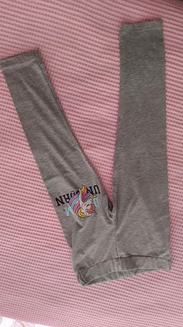 Kız çocukları için dar kesim gri tayt, renkli unicorn baskısı ve düğme detaylarıyla, yumuşak sentetik kumaştan üretilmiştir. hiç giyilmedi
