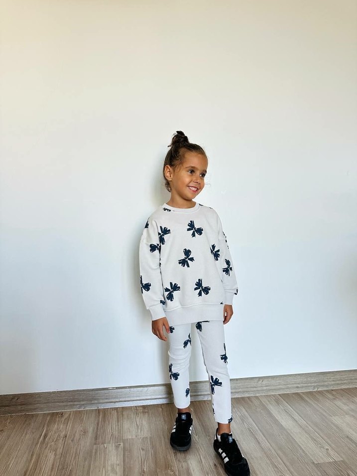 Kız çocukları için uzun kollu, bisiklet yaka, yumuşak triko kumaştan yapılmış gri baskılı sweatshirt. Rahat ve bol kesim, streetwear tarzında.