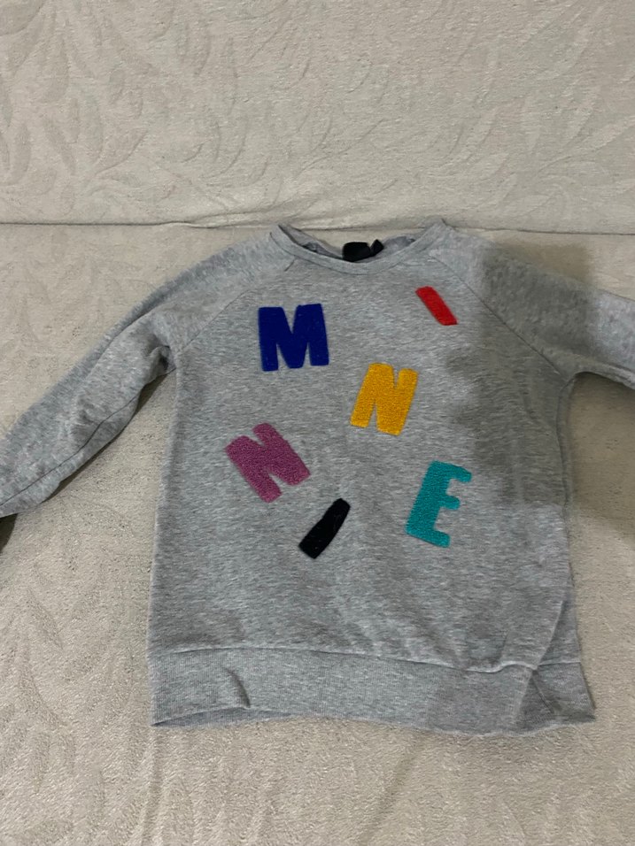 Gri renkte, uzun kollu, bisiklet yakalı kız çocuk sweatshirtü. Yumuşak, örme tüylü kumaştan olup, ön yüzünde renkli baskılı harfler bulunur.