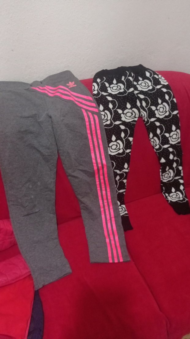 Gri renkli, elastik bel bantlı kız çocuk taytları. Biri pembe çizgili, diğeri siyah beyaz çiçek desenli. Rahat ve şık tasarım.