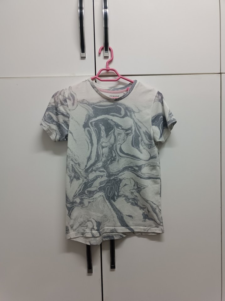 Kız Çocuk Gri Batik Desenli Kısa Kollu Tişört
