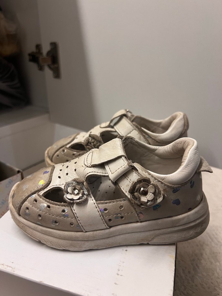 Gri ve beyaz tonlarda bağcıklı kayışlara ve kauçuk tabana sahip bağcıklı kız çocuk spor ayakkabısı, sokak modası için uygundur.