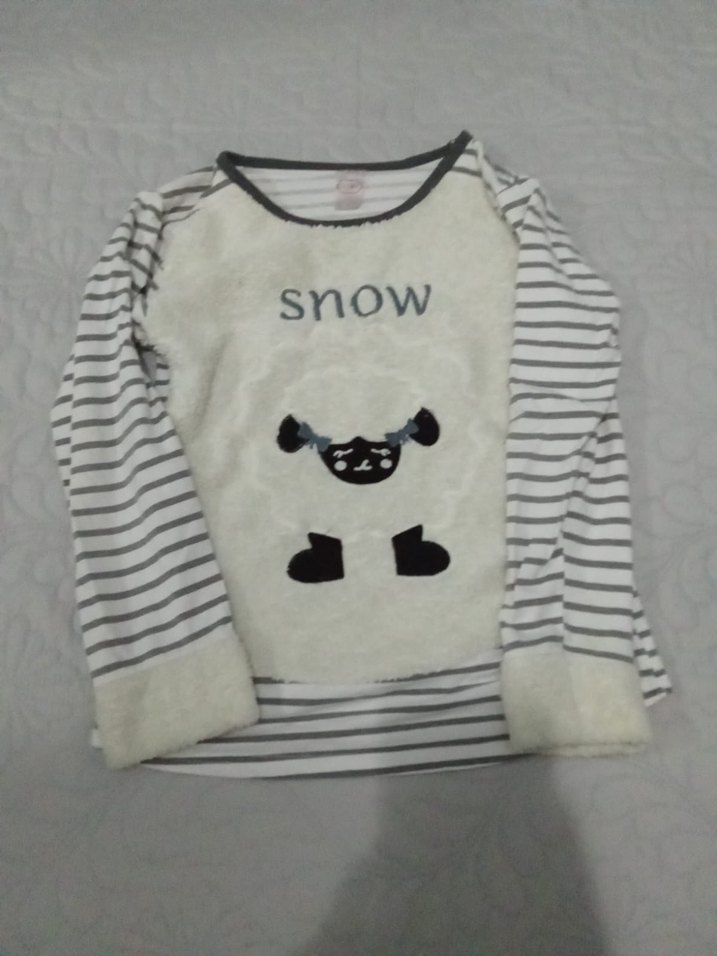 Kız çocuk için uzun kollu, gri çizgili kollar ve yumuşak, sıcak dokulu ön panelde 'snow' yazılı baskılı sweatshirt. Yuvarlak yaka ve bol kesimlidir. ❄️