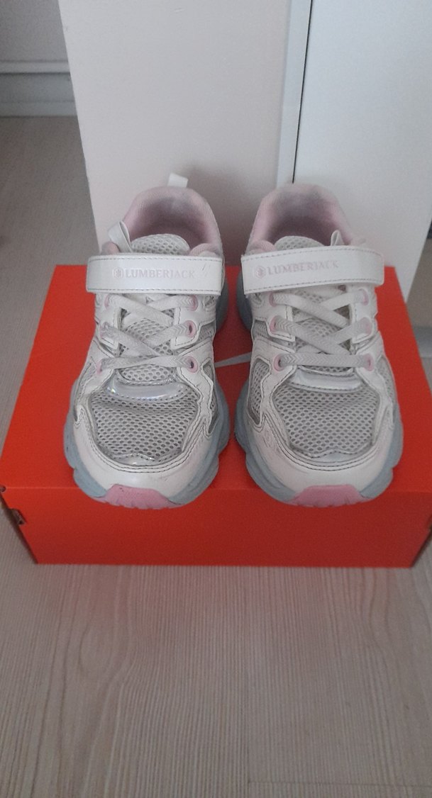 Gri ve beyaz renklerde, cırt cırtlı kız çocuk spor ayakkabısı. Kauçuk tabanlı ve nefes alabilen file üst yüzeye sahip.