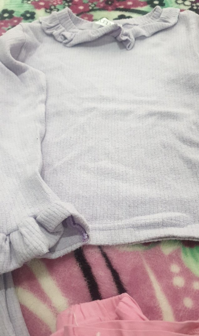 Kız çocukları için bol kesim gri boğazlı kazak, uzun kollu ve fırfırlı detaylara sahip. Yumuşak ve sıcak kumaştan. mor renklidir.