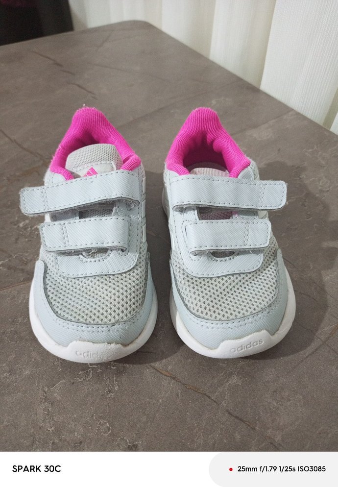 Gri renkte, cırt cırtlı kız çocuk spor ayakkabısı. Kauçuk tabanlı, sade sokak stili. İç kısmı canlı pembe renktedir.