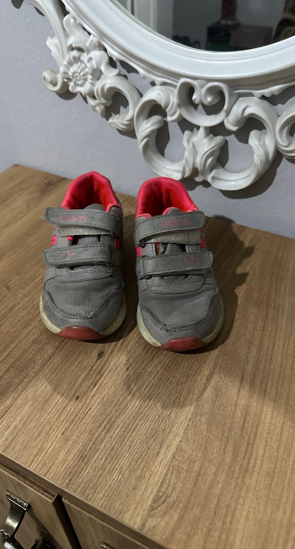 Gri renkli kız çocuk spor ayakkabısı, cırt cırtlı ve kauçuk tabanlıdır. Canlı kırmızı iç detayları ile sade ve sokak stiline uygun tasarlanmıştır.