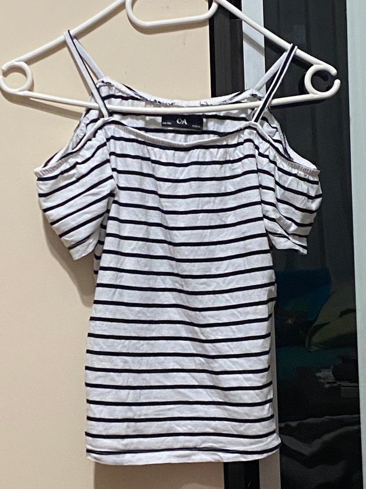 Kız çocukları için pamuklu, gri çizgili, kısa kollu, askılı ve oturan kesim tişört. İp detaylı, trend sokak stili için uygun.