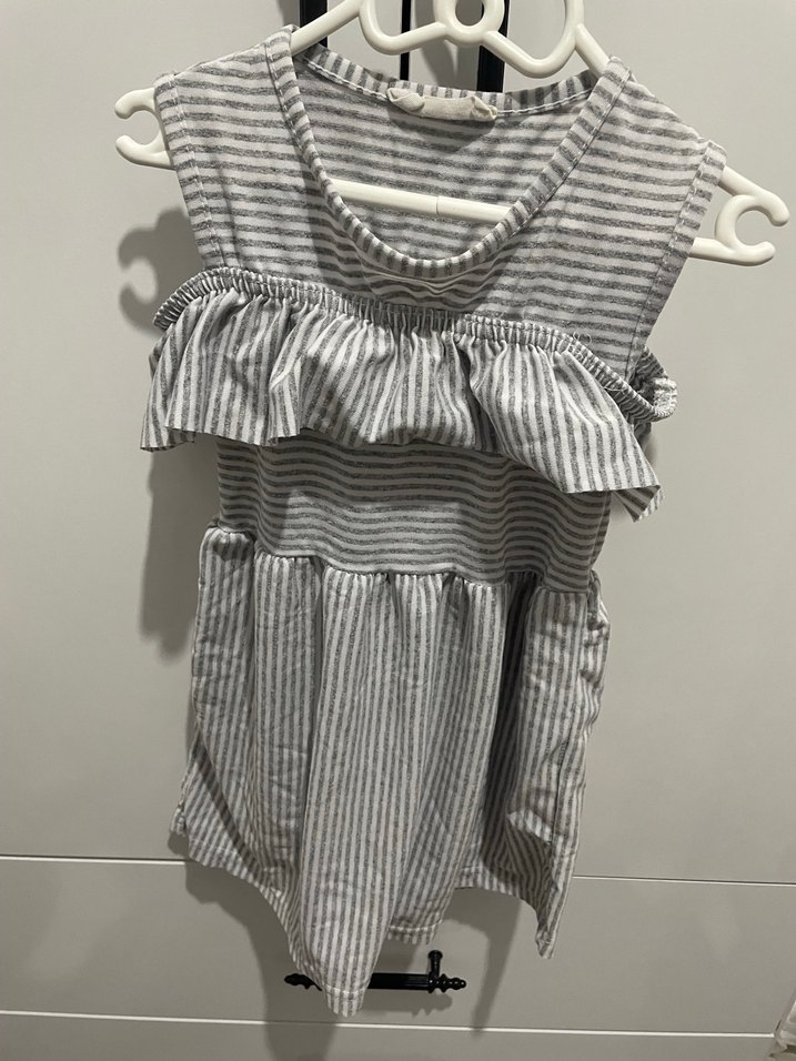 Kız Çocuk Gri Çizgili Kolsuz Elbise