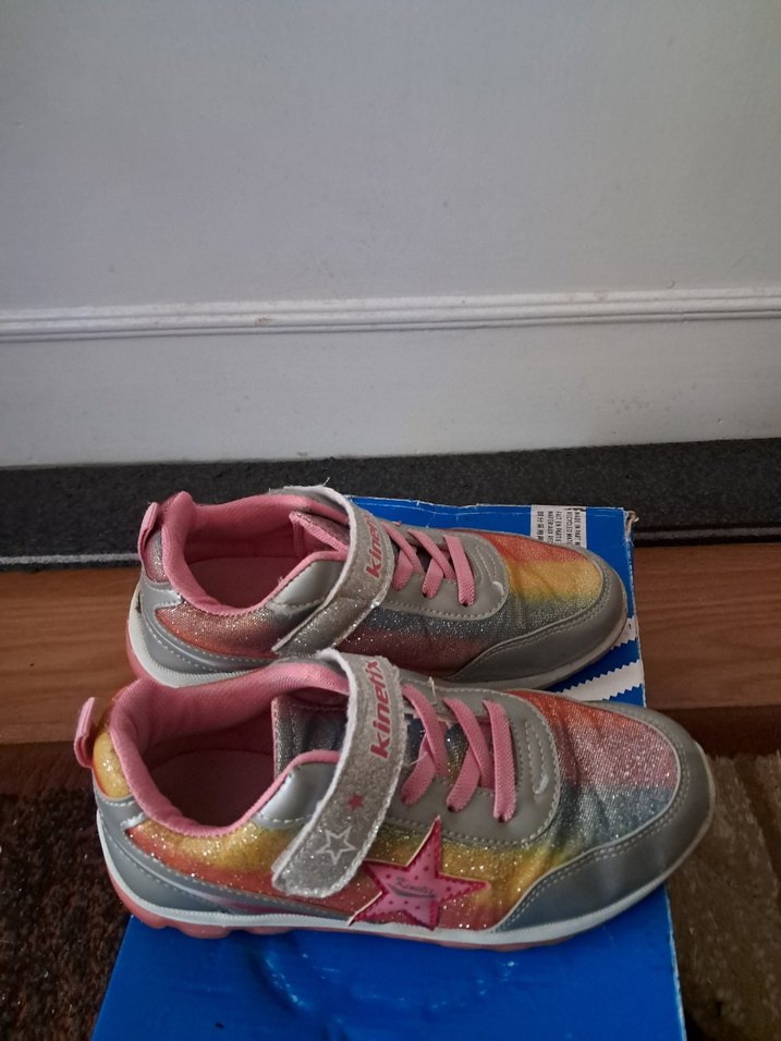 Kız çocukları için bağcıklı ve cırt cırtlı, gri çok renkli batik desenli, lastik tabanlı spor ayakkabılar, sokak tarzı için uygundur.