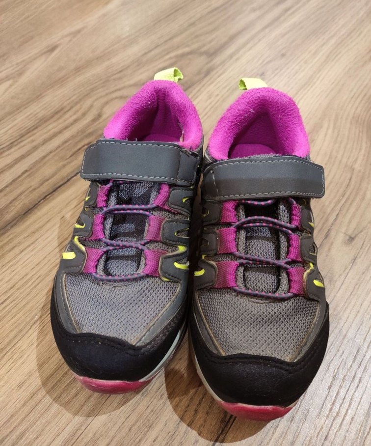 Kız çocukları için cırt cırtlı, kauçuk tabanlı gri ve çok renkli spor ayakkabılar. Rahat iç astara sahip, günlük sokak stili için uygun. ayakabı cok az kullanildi . resimde gorundugu gibi tertemiz.