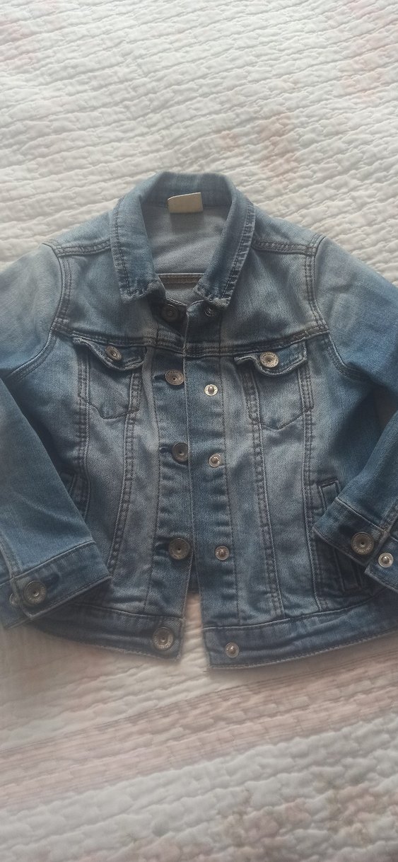 Kız çocuklar için düğmeli, kesimli yaka detaylı gri denim ceket, rahat sokak tarzı için uygun.