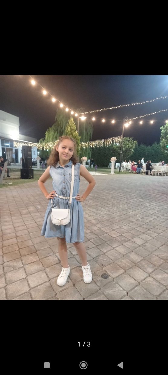 Kız çocuk için kemerli, askılı ve straplez yaka detaylı, bol kesim gri pastel tonlarında denim elbise. Rahat ve şık sokak stili için uygundur.