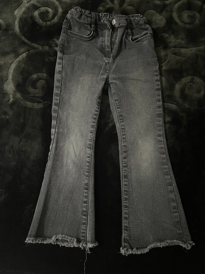 Kız çocukları için gri denim pantolon, regular fit ve tokalı detaylı. Normcore tarzda, hafif geniş paçalı ve yıpranmış kenarlı. ✨