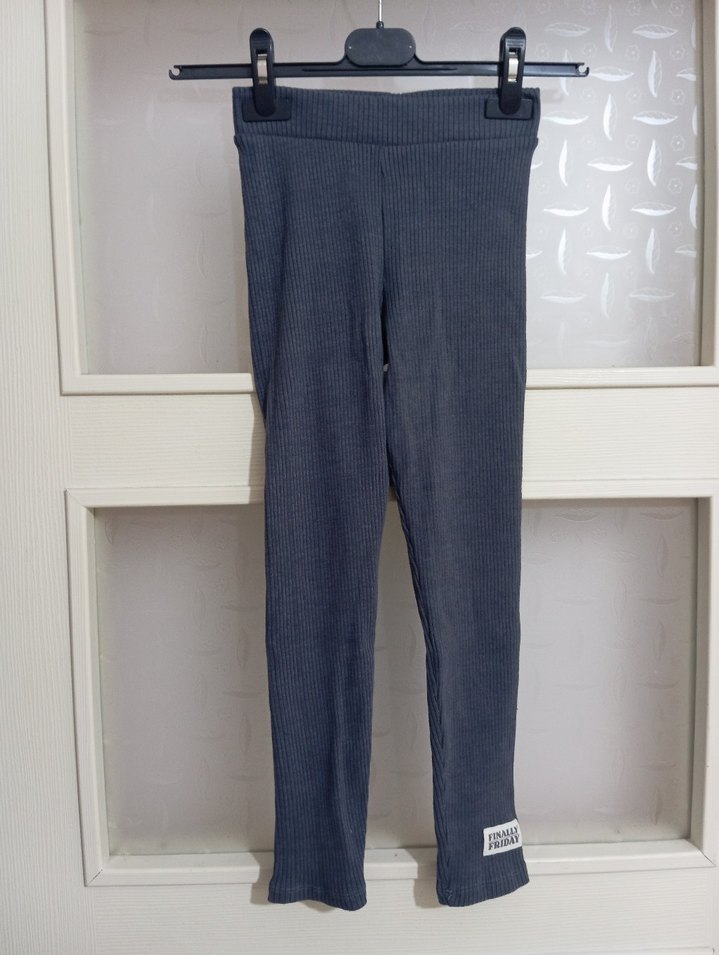 Kız çocukları için gri renkli, fit kesim denim tayt. Düz ve rahat bir tarz sunar, paça kısmında küçük etiket detayı vardır.