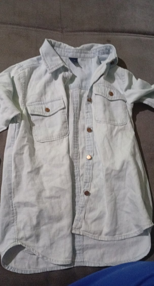 kız çocuk için gri denim kumaştan, uzun kollu, düğmeli, bol kesim gömlek. Notch yakalı ve önünde iki cep bulunur. Trend sokak stili için uygundur.