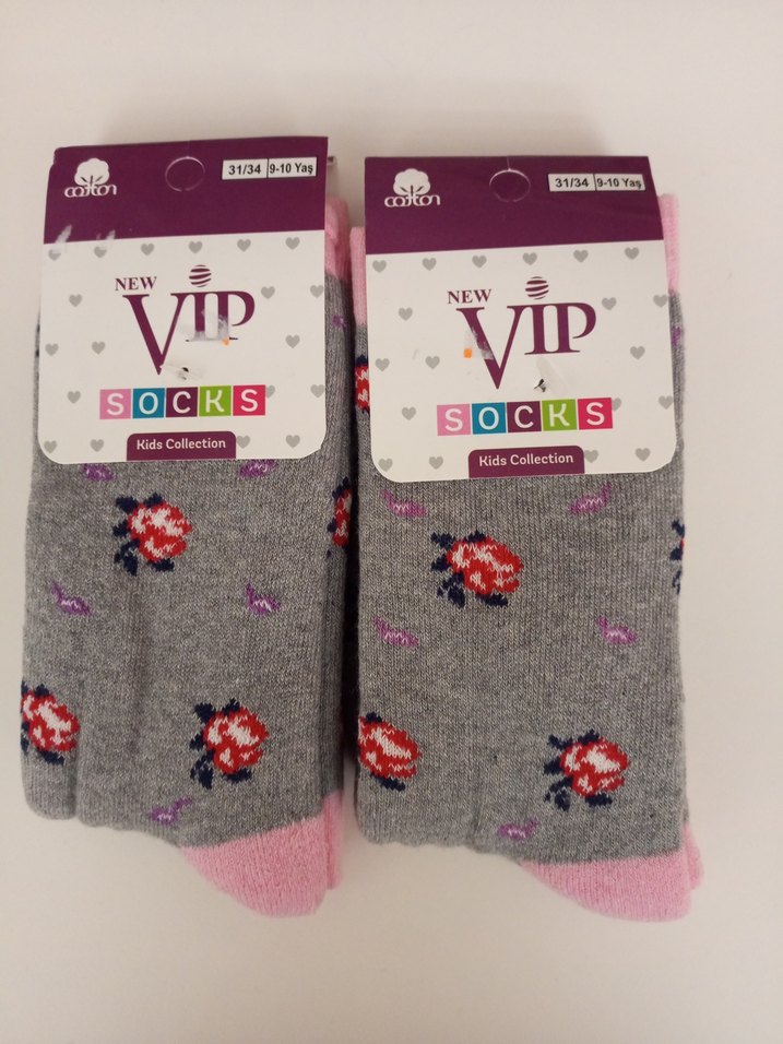 Kız çocukları için gri zemin üzerine baskılı çiçek desenli, yumuşak ve sıcak kumaştan havlu çoraplar. VIP Kids Collection ürünüdür. 2'adet fiyatı