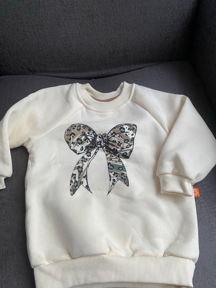 Kız çocukları için yuvarlak yaka ve uzun kollu, bol kesim sweatshirt. Yumuşak ve sıcak kumaştan üretilmiş, önünde desenli fiyonk baskısı bulunur.hiç kullanılmamıştır