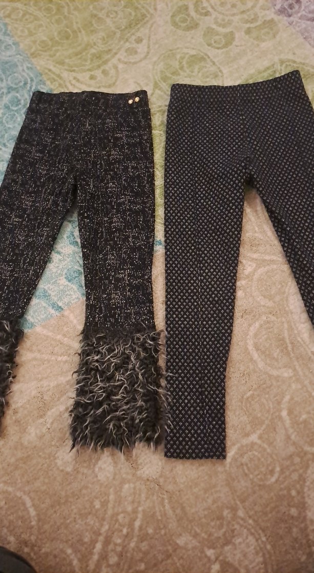 Sentetik kumaştan yapılmış, kürklü detaylı ve desenli koyu gri, kız çocukları için dar kesim tayt. Trendy casual tarz için uygundur.
