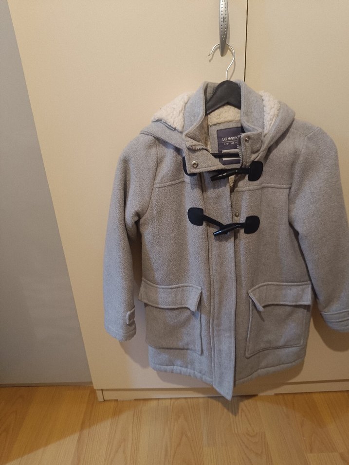 Gri renkli, düğmeli ve notched lapel yaka detaylı, rahat kesim kız çocuk montu. Yumuşak ve sıcak tutan fleece kumaştan üretilmiştir.