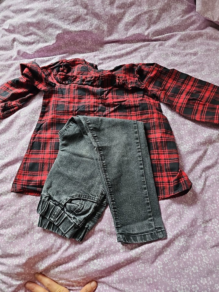 Kız Çocuk Gri Düğmeli Uzun Kollu Gömlek ve kot pantolon kombin