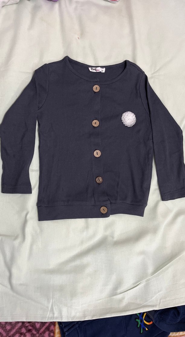Kız çocukları için gri, düğmeli ve uzun kollu, bol kesim bir cekettir. Yumuşak ve sıcak kumaşa sahip olup sade tasarımda beyaz çiçek detayı bulunur.