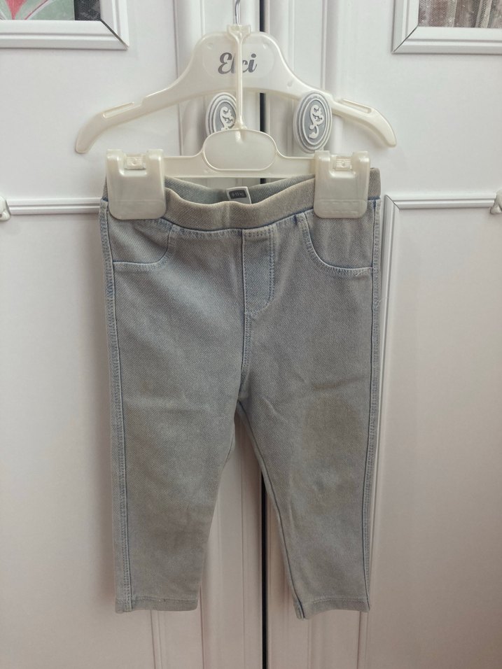 Kız çocukları için elastik bel, gri renkli, fitted kesim denim pantolon. Normcore tarzı ve desen içermeyen rahat bir modeldir. 9/12 ay