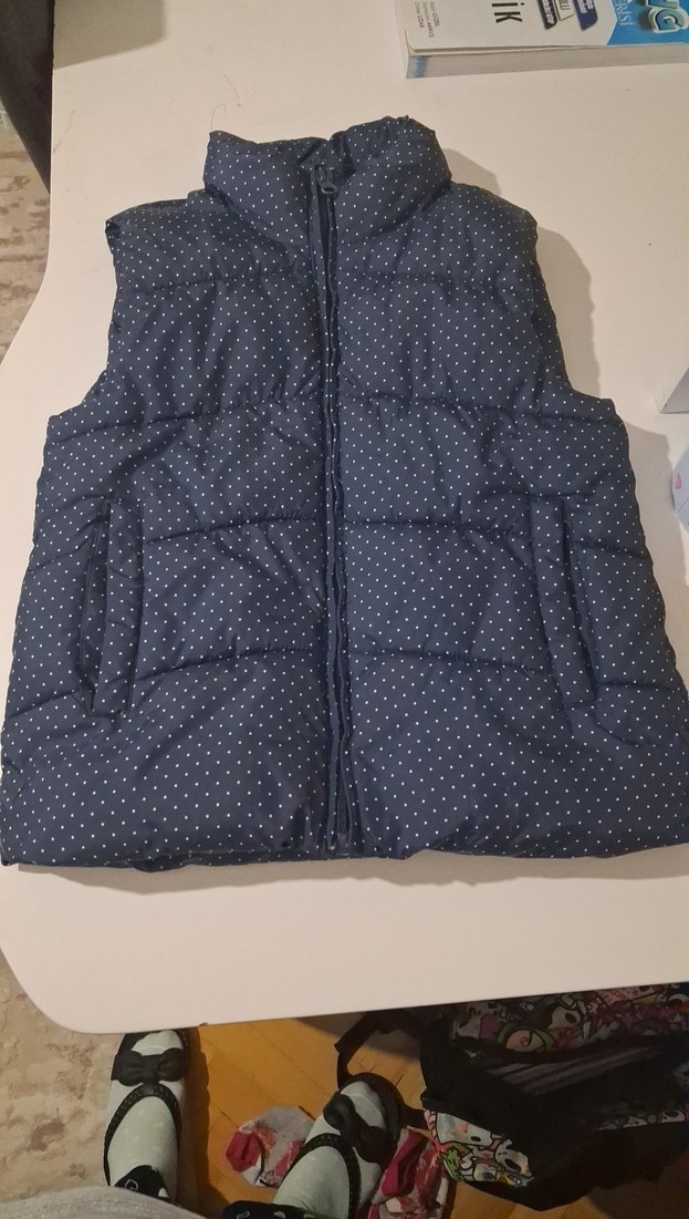 Küçük noktalı koyu gri, fermuarlı, kolsuz ve vücuda oturan yelek. Yumuşak ve sıcak kumaştan üretilmiştir.