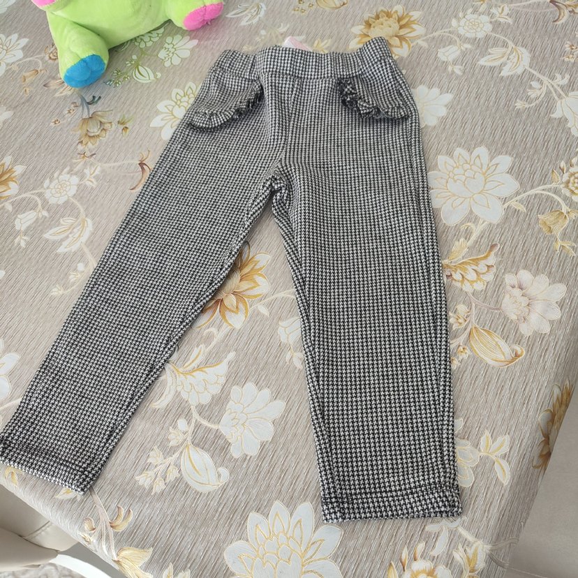Dar kesim gri kız çocuk taytı, nakış detaylı ve fırfırlı, yumuşak sentetik kumaştan, sokak modasına uygun.