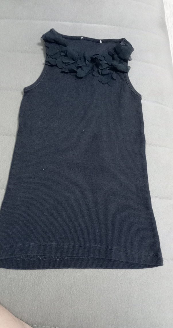 Kız çocukları için gri renkte, yüksek yakalı ve fırfır detaylı, kolsuz ve vücuda oturan yelek. Sade ve düz tasarım.