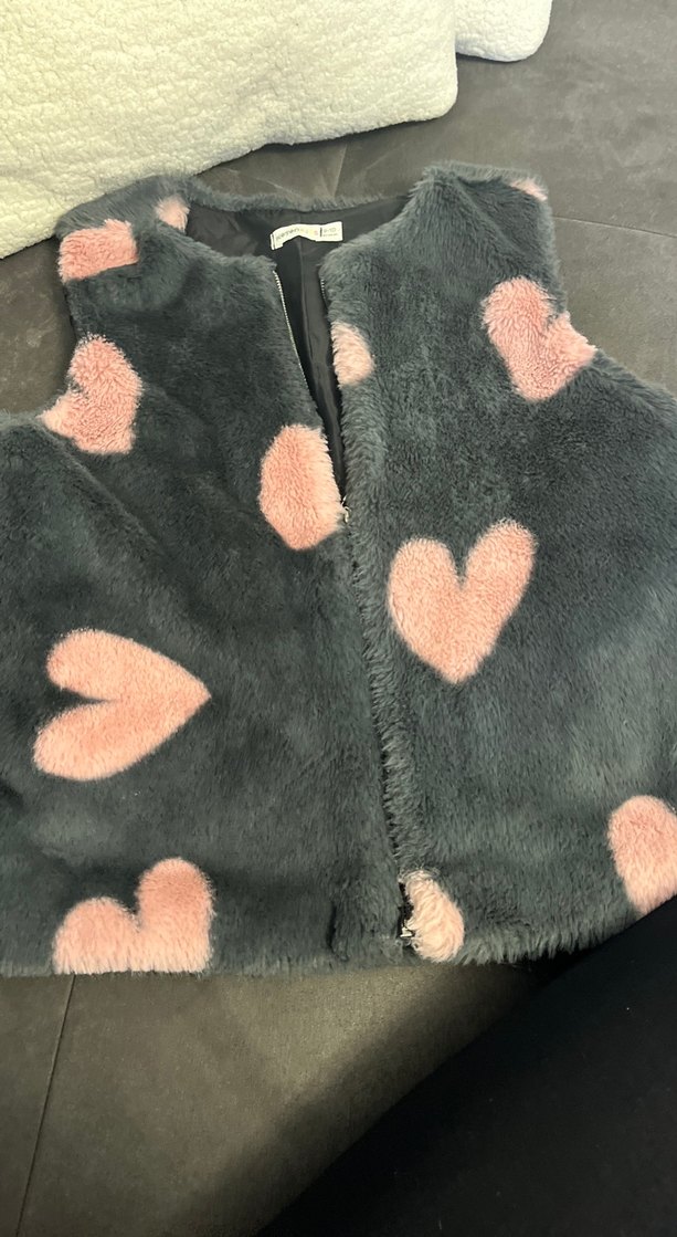 Kız Çocuk Gri Kalp Desenli Peluş Yelek